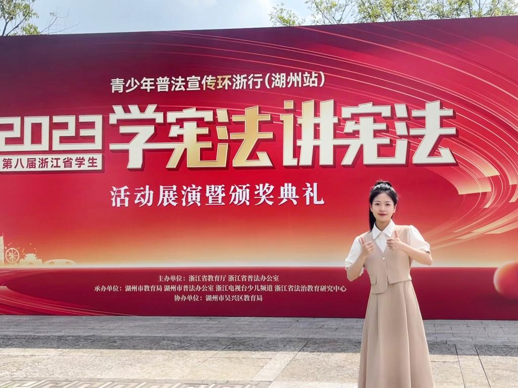 为全面学习贯彻党的二十大精神,深入学习贯彻习近平法治思想,推动青少年宪法宣传教育常态化长效化,9月16日至17日,由浙江省教育厅主办的第八届浙江省学生“学宪法 讲宪法”活动省级决赛在湖州举行。本届比赛分为小学、初中、高中、高校四个组别,分为演讲比赛和素养竞赛两个组别。经过学院推荐、学校选拔和省级初赛的层层筛选,我院学生何燕最终进入此次赛事演讲类决赛。