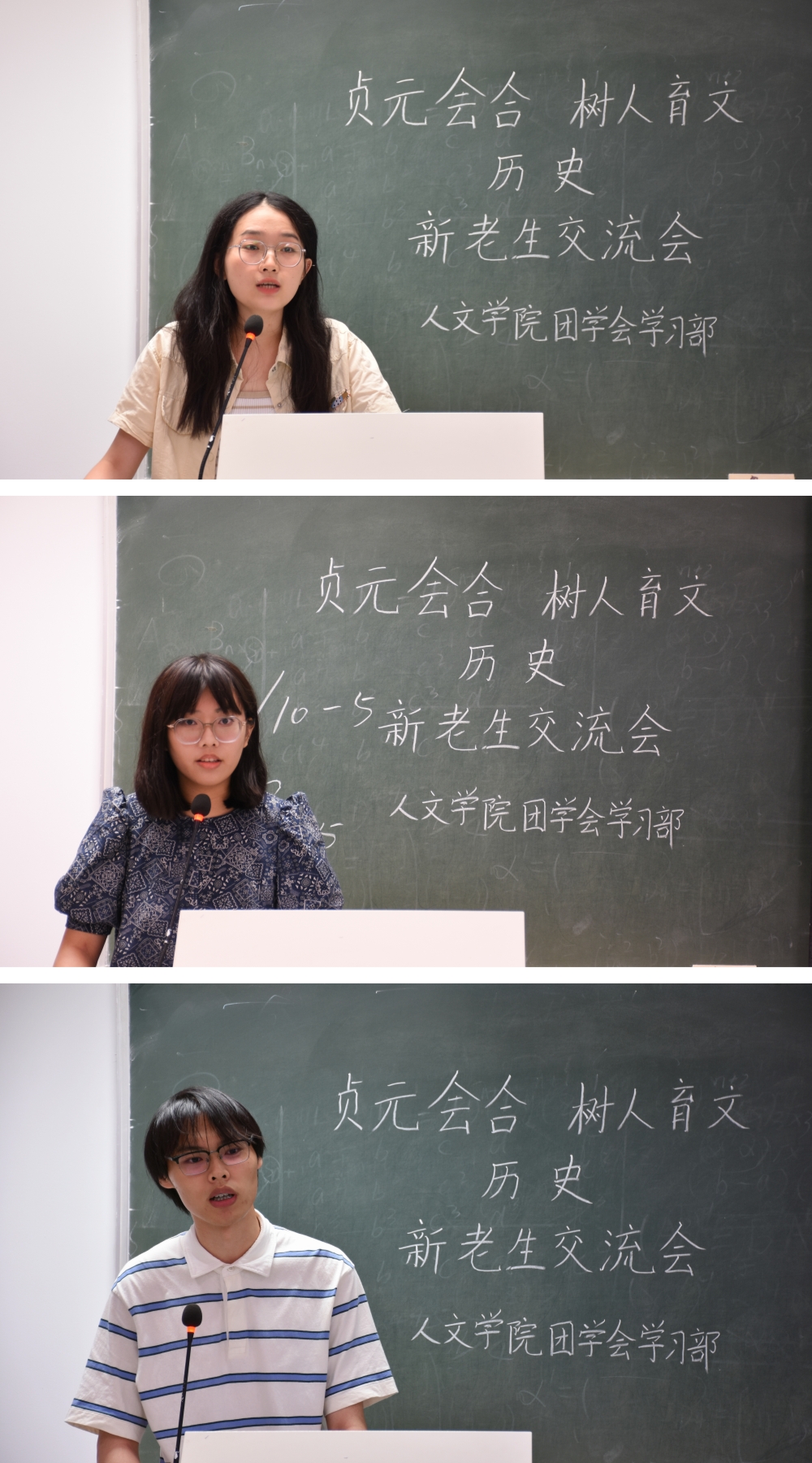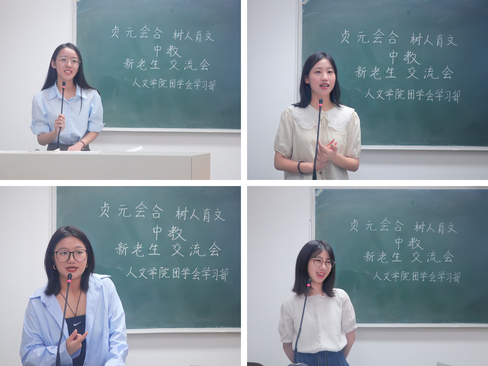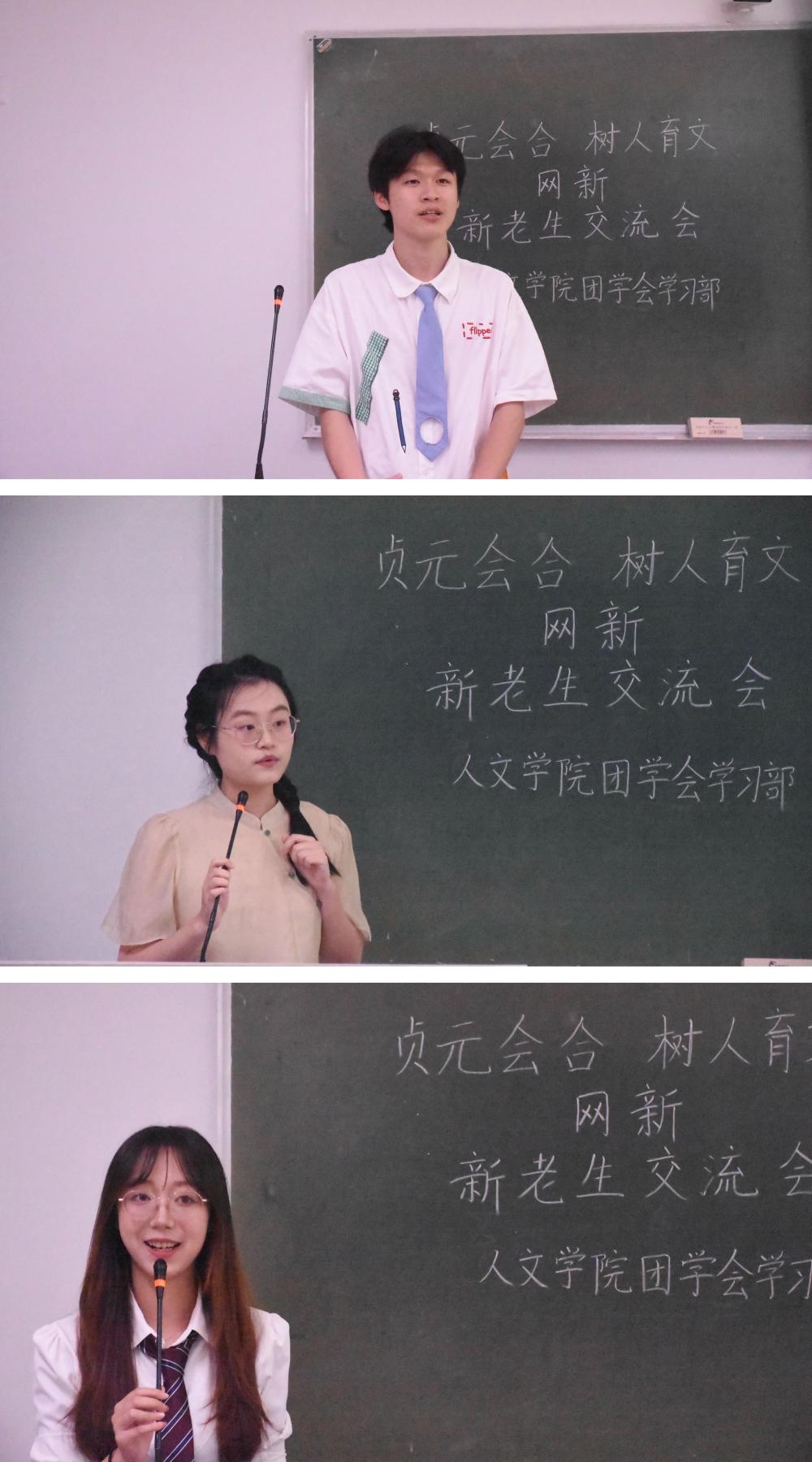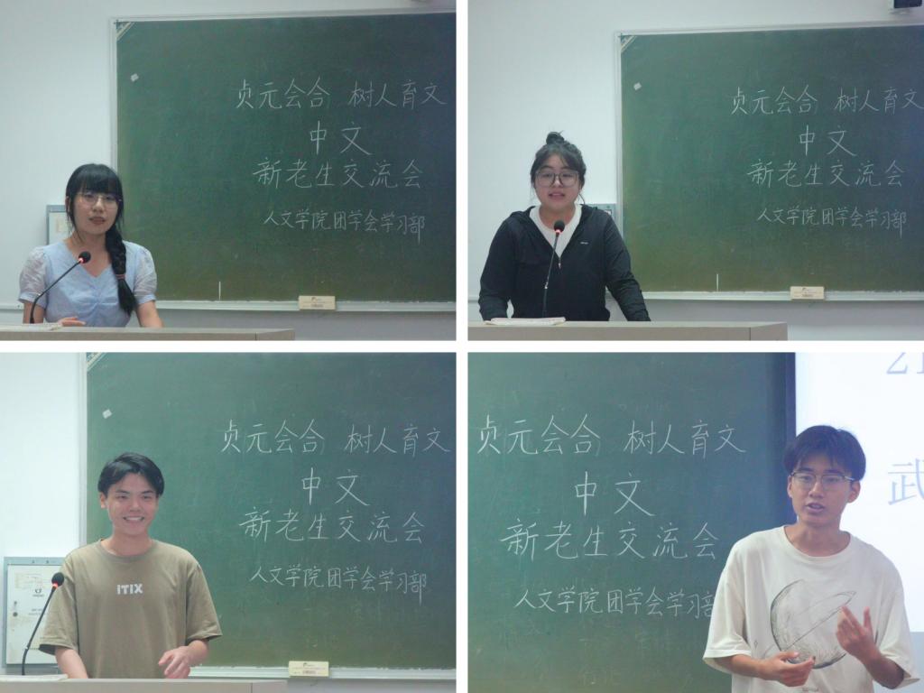 9月20日及9月22日晚,人文学院在2101、1209、1210和1310四个教室分别举办了中教、网新、中文和历史四个专业的新老生交流会。中教专业代表张潇颖、王江婵媛、梁安慧、张心悦,网新专业代表郑张博、赵静娴、樊晨茜,中文专业代表熊佳悦、陈韵、武子瑜、沈谢杰,历史专业代表褚骁阳、杨子吟、王可儿应邀到场,部分23级同学参加此次交流会。