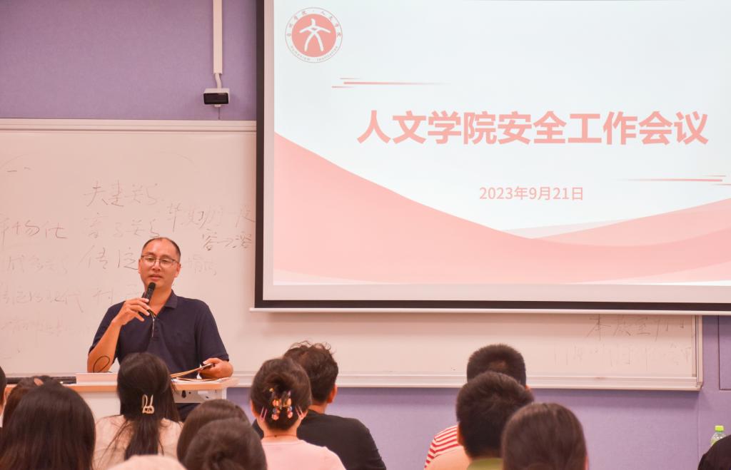 9月21日中午,人文学院在1108教室召开安全工作会议。院党委副书记林军辉主持,学工办全体老师、各班班长、团支书、团学会部分成员参加本次会议。