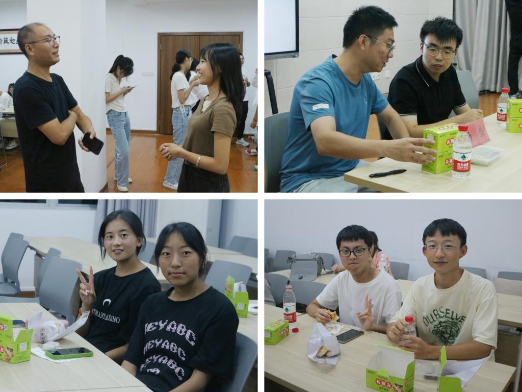 在师生互动环节,学院为少数民族的同学们精心准备了临海特色小吃——海苔饼、板栗饼和乌饭麻糍。师生们坐在一起,边享受美食,边畅聊,现场气氛热烈。