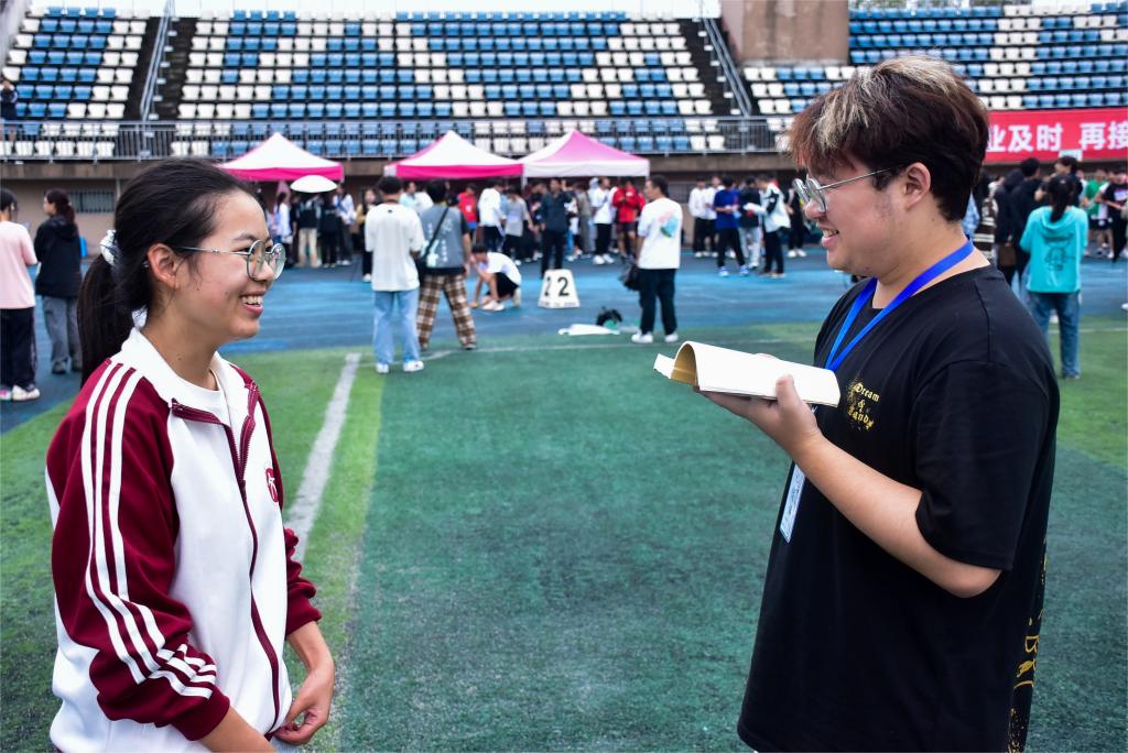 作为台州学院运动会的老面孔,杨露保持以往的英姿飒爽,继续在本次运动会中摘得了耀眼的成绩。从她灿烂的笑容和清澈的眼神中能够看出,这位乐观开朗的女孩拥有超乎常人的从容自信、超强的能量和无限的爆发力。采访时,她认真而不失俏皮,仿佛是一场朋友间的交谈。“备战此次运动会时,内心常常被800米的恐惧支配着,而当我真的踏上跑道时,内心反而渐渐安定了,也取得了一个令自己比较满意的成绩。”她的积极乐观与从容自得促使她在赛场上克服恐惧,及时调整,发挥出应有的水平。同时她将“既来之则安之”这句话送给未来的自己,以乐观积极的态度继续奔跑在人生的赛道上。