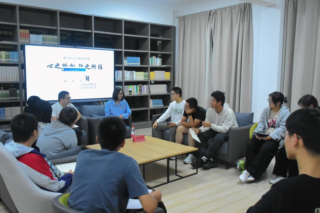 10月31日晚,第122期“论语问茶”活动于一号楼二楼教工之家举行,人文学院张弛老师、23级辅导员鹿宵宵应邀出席。