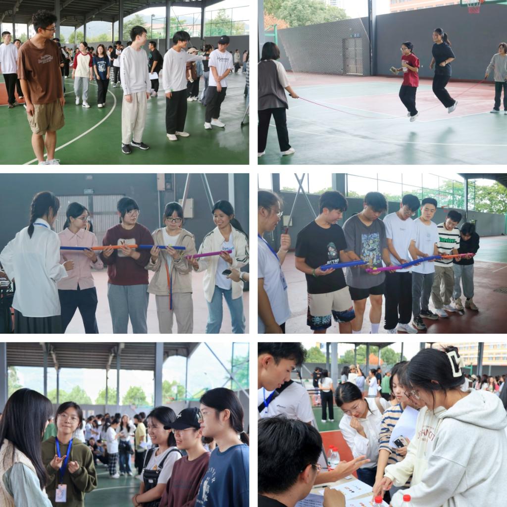 开幕式结束后,参赛人员在风雨篮球场以寝室为单位参加“绿野仙踪梦幻旅程”趣味游园活动。本活动由“逃离龙卷风”“稻草人的试炼”“铁皮人寻心记”“狮子王的试胆大会”及“决战翡翠城”五个活动组成。这些活动看似简单,却都考验着选手的实干能力和团结意识。各个项目正如火如荼地展开,参赛者们协同合作,团结一心,默契配合,最终成功地完成了任务。活动结尾,他们以热情的掌声分享彼此的喜悦,球场内洋溢着青春的气息。经历此次活动,寝室成员们的关系愈发密切融洽,同学们也更深刻地意识到了团结合作的重要性。