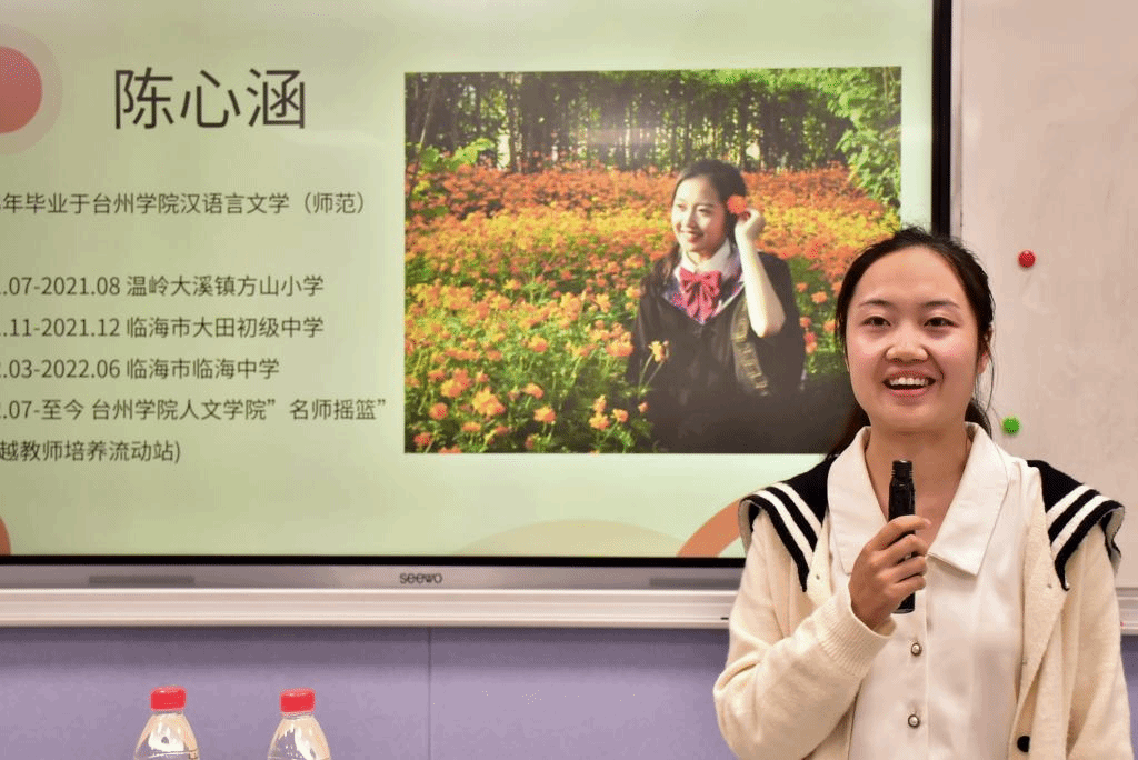 活动伊始,陈心涵以温州与台州地区的教师招聘考试考情为例,介绍了教师招聘考试中需要注意的事项,并且尤其建议大家参加提前批的考试,提高录取概率。同时,对于考前预备时期,她给了大家三条宝贵建议:一是要提高自己的表达能力和形象气质,二是尽量提前四个月做好准备,三是大学期间定位好自己的人生方向。随后,她给大家分享了自己的应试经验。她强调,一定要努力过四级、体测、普通话二甲等,这些条件是拿奖学金与提升综测成绩的基础。此外,她建议,大家上课认真听讲,不要把时间浪费在电子产品上,只有在大学期间不断提升自己,才能让自己未来的生活有保障。最后,陈心涵希望在座的每位同学都能做到心与行动一致——心里想着努力,行动也做到努力,尽情感受大学生活的美好,成就快乐人生。