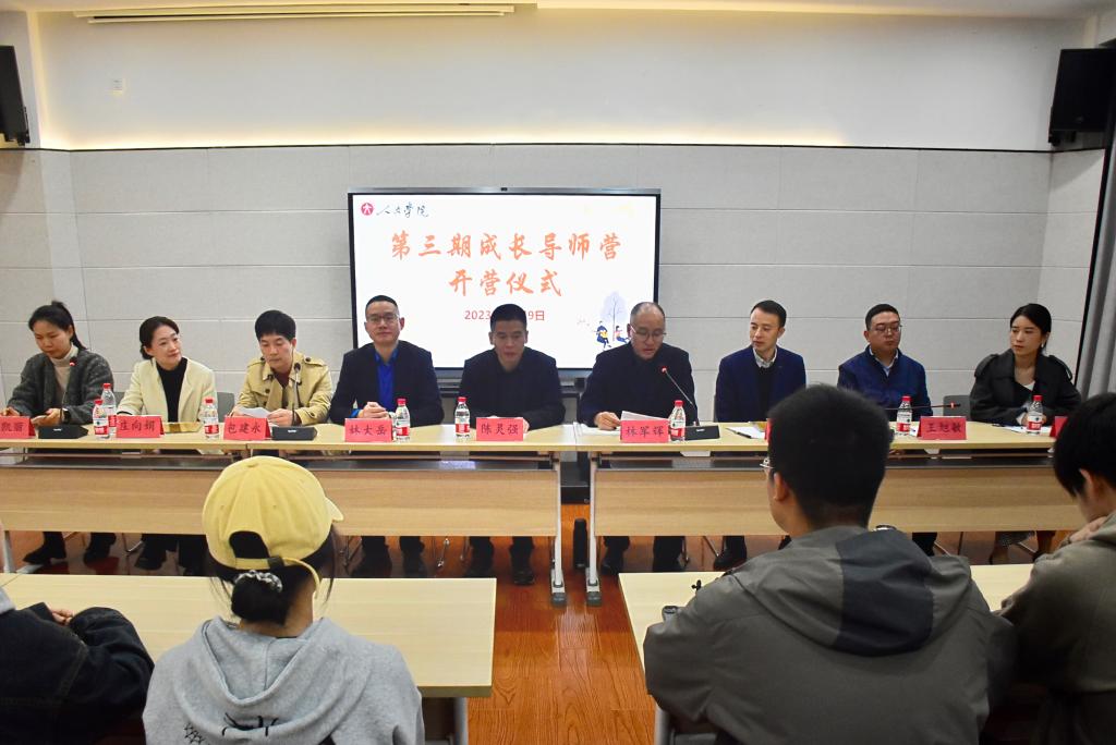 为凝聚校友力量,聚焦人才培养,12月9日下午,人文学院第三期成长导师营开营仪式在实训室举行。人文学院党委书记陈灵强、副书记林军辉出席,七名在媒体领域工作的优秀校友代表受邀参加活动。部分中文和网新专业学生到场聆听。