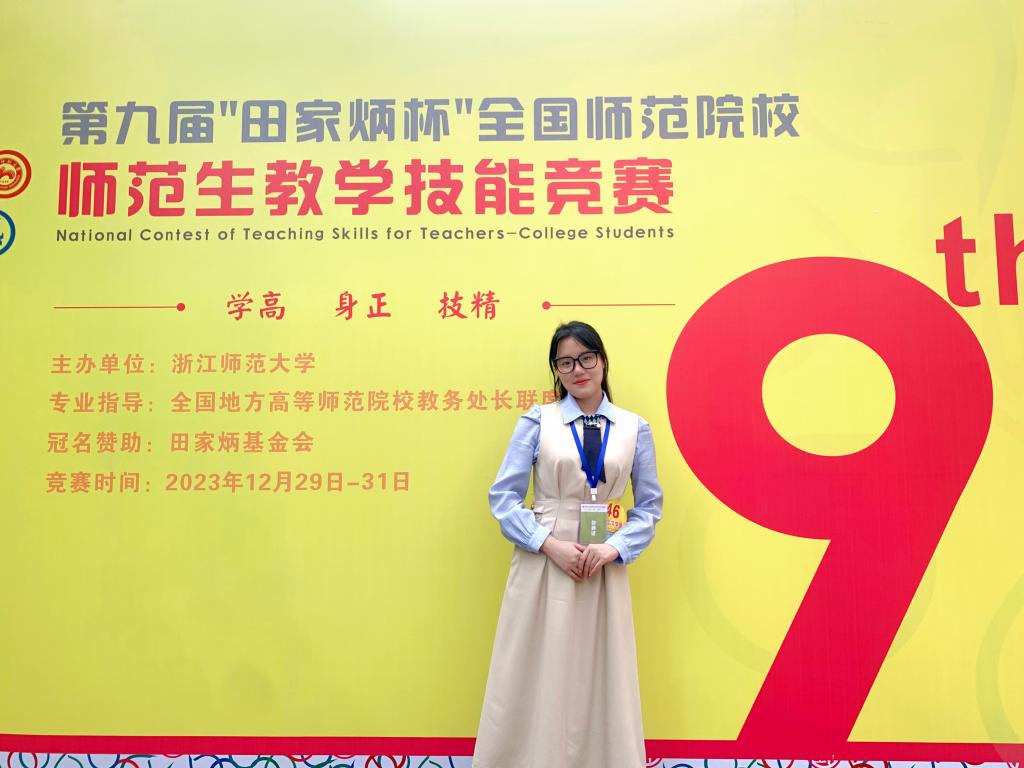 2023年12月29日至31日,第九届“田家炳杯”全国师范院校师范生教学技能竞赛决赛在浙江师范大学落下帷幕。人文学院2020级汉语言文学(师范)专业学生胡怡萱荣获“高中学段汉语言文学专业组别”一等奖,这是学校唯一一名师范专业参赛选手。