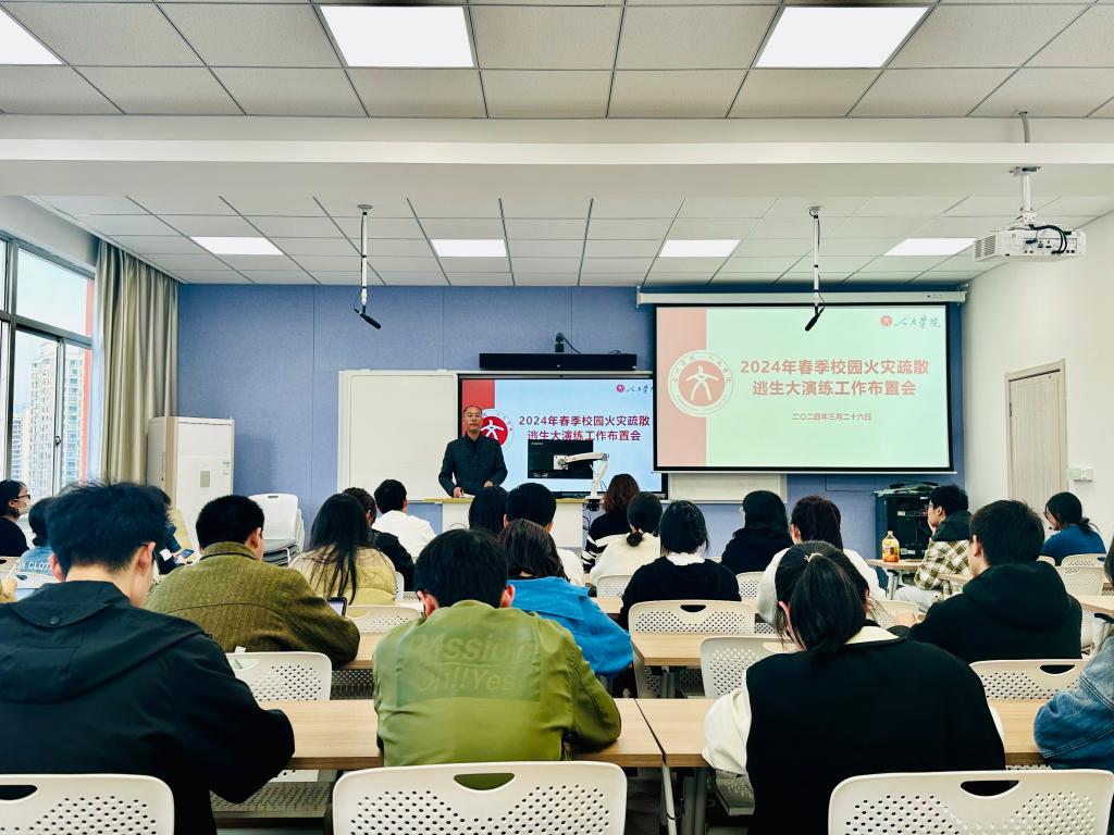 为进一步做好消防安全管理工作,3月26日下午,人文学院于1410教室召开2024年春季校园火灾疏散大演练工作布置会。院党委副书记林军辉、学工办全体老师及各年级班长参加。
