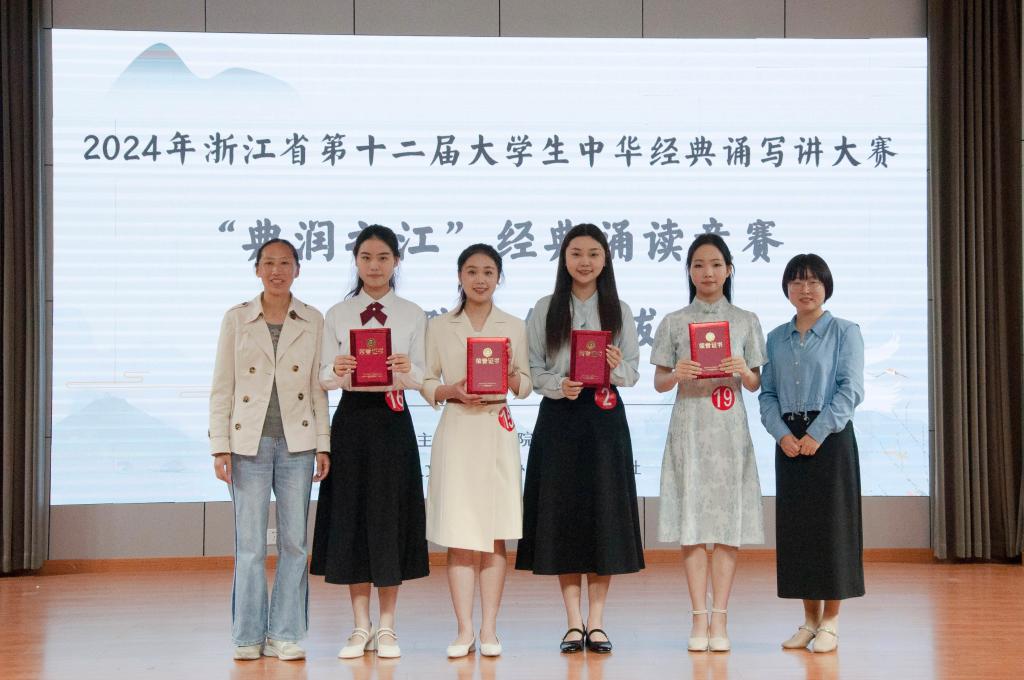五千年文化,三千年诗韵。5月16日下午,浙江省第十二届大学生中华经典诵写讲大赛“典润之江”经典诵读竞赛校级选拔赛在临海校区大学生活动中心顺利举行。继续教育学院直属党支部书记鲍婷婷、教师教育学院(体育学院)教师代表阮佳佳、陈童,人文学院教师代表蔡海燕、金妮娅出席并担任评委。