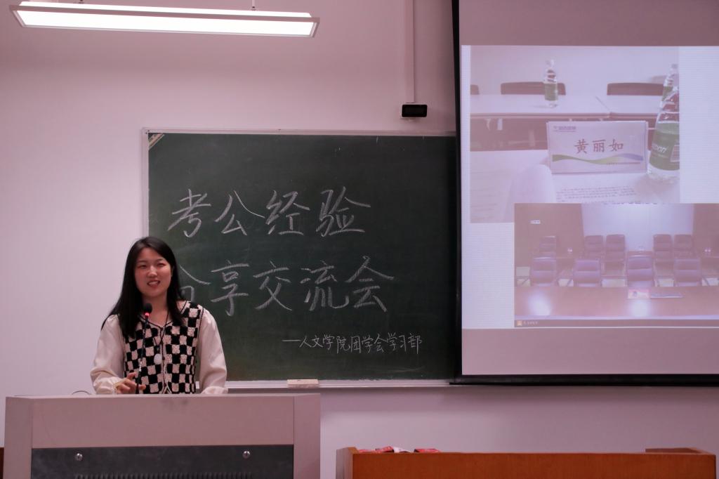 为进一步发挥优秀考公学子的模范引领作用,帮助有意向考取公务员的同学答疑解惑,人文学院于6月5日晚在1204教室举办了“公心筑梦”第二期:考公经验分享会。本次分享会特别邀请了贺瑜坪、林心悦、黄丽如三位考公成功的学姐分享自己的备考经验和心得。