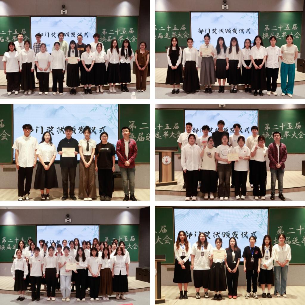 在部门奖状颁发仪式中,在场老师为各部门颁发奖状,表彰一年来团学会成员们的辛勤工作。