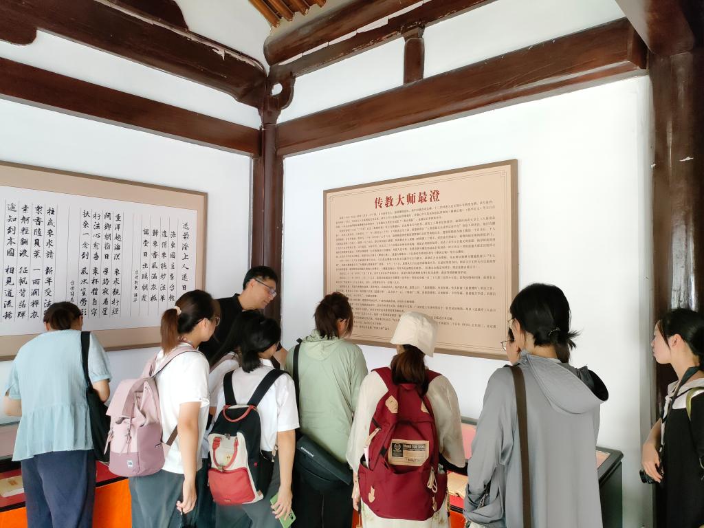 7月12日上午,实践队员们来到台州府城景区,聆听台州文史专家马曙明老师深入浅出的专业讲解。首站抵达龙兴寺,队员们在此感受到了闹市中留存的一片宁静,亲睹入口处“神龙古刹”牌坊所蕴含的历史沉淀。队员们参观了龙兴寺内的千佛塔院,领略唐代千佛塔之雄伟风貌;并探访了极乐净土院,瞻仰日本天台宗创始人最澄受菩萨戒之戒坛。队员们深刻领悟到龙兴寺在中日文化交流中的重要地位及其佛法的深邃内涵。随后,队员们转至紫阳街,参观古城乡贤馆,体味台州府城独特的乡贤文化,正如古语所云:“郡书赤矜其乡贤,美其邦族”。行程最后,队员们分组自由游览紫阳街,深入感受了街区的民俗风情。