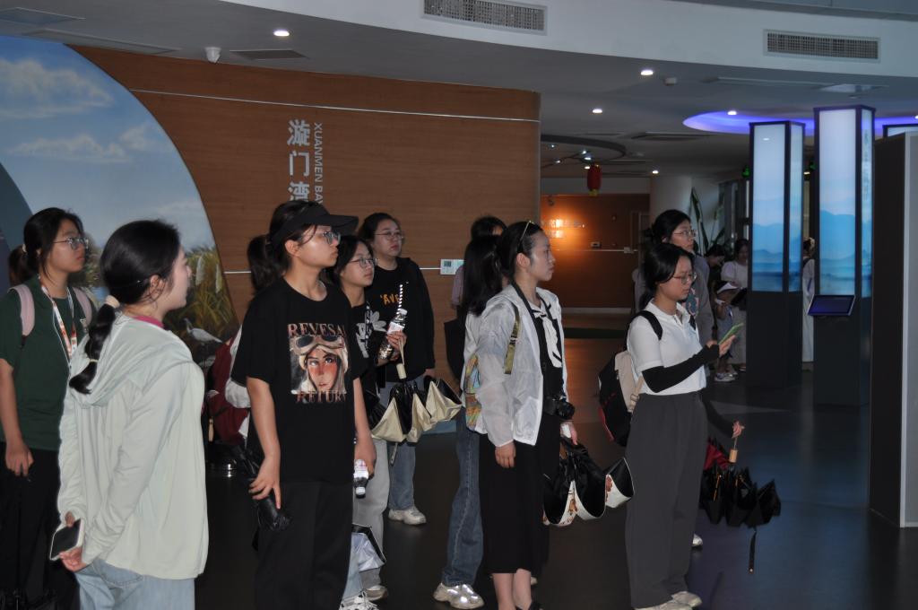 7月11日上午,实践队行至玉环漩门湾国家湿地公园,该地集自然生态、人文景观、科普教育于一体。队员们首先到达以 “滨海湿地”为主题的漩门湾湿地科普馆,了解漩门湾的围垦历史与“沧海桑田”的变迁。从室内到户外,从标本到实体,成员们深入湿地观飞禽,感受自然的蓬勃朝气,在满塘荷花中领悟“接天莲叶无穷碧,映日荷花别样红”的夏日绝唱。漩门湾湿地公园独特的地理位置赋予了这片湿地丰富的自然资源和生态价值,成为人与自然和谐共生的典范。