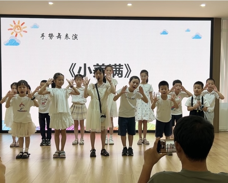 最后的节目是全体小朋友们排练多日的手势舞《小美满》,孩子们稚嫩的歌声环绕舞台,手指在身前灵活的舞动。歌声和舞蹈带着对生活的爱,在每一个人的心中播下种子,收获希望。