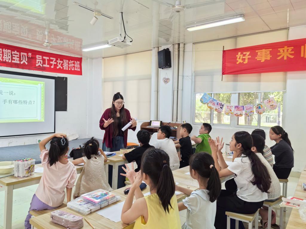 7月29日,实践队员创新上课方式,给小朋友们带来了“手形添画”绘画课。在实践队员的指导下,小朋友们以手为模型,用稚嫩却充满无限想象力与创造力的笔触,在画纸上挥洒着属于自己的梦幻篇章。他们不受现实束缚,任由思维跳跃,将心中的奇思妙想化为一幅幅生动有趣的画面。小朋友们自由地表达心中所想,用实际行动诠释着“艺术无界,创意无限”的真谛。