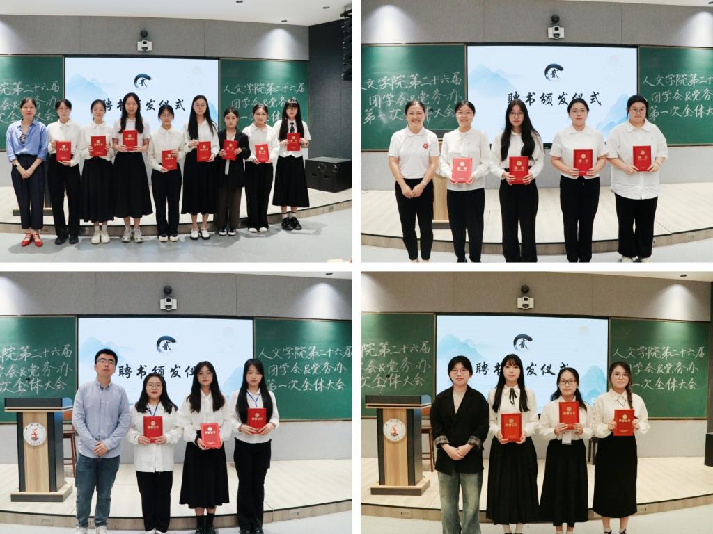 学院老师向学生干部代表颁发聘书