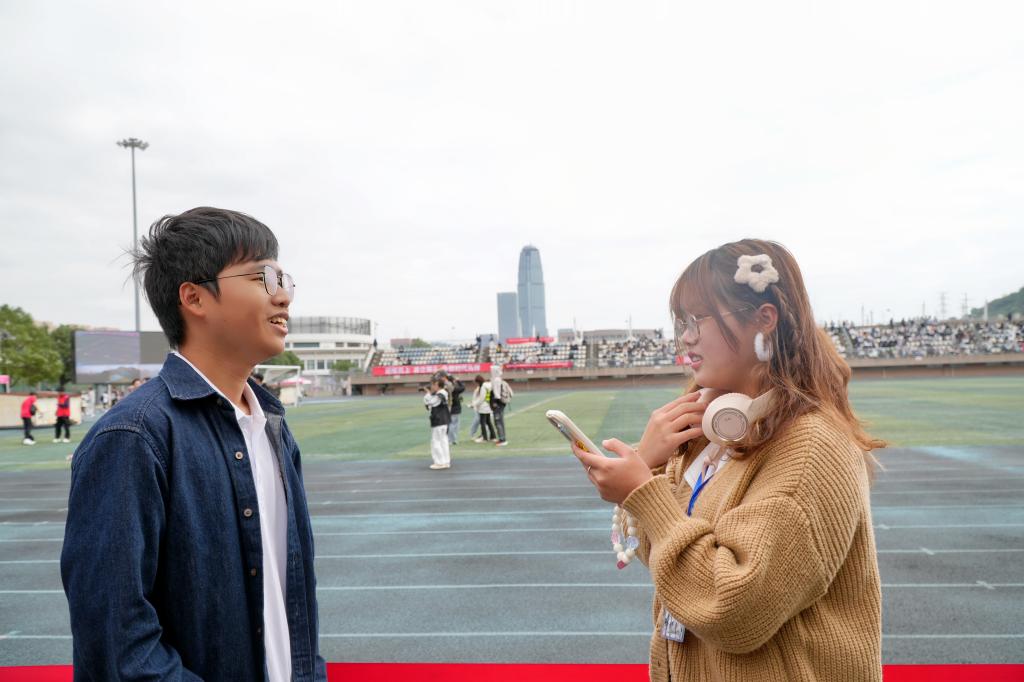 在一天的比赛中,总有无数细小的瞬间在闪耀着独特的光。谈到印象最深刻的一幕时,汪尚燊的敬佩之情溢于言表。他见证了女子一百米比赛时人文学院运动员樊晨茜飞扑过终点的热血与拼搏,感叹于樊晨茜的坚毅。对于自身工作的意义,汪尚燊认为,在给运动员们做好后勤保障、为学院做出贡献的同时,志愿活动还有助于建立新的社交联系、加强现有的人际关系,进一步增进理解、提升团队协作能力。
