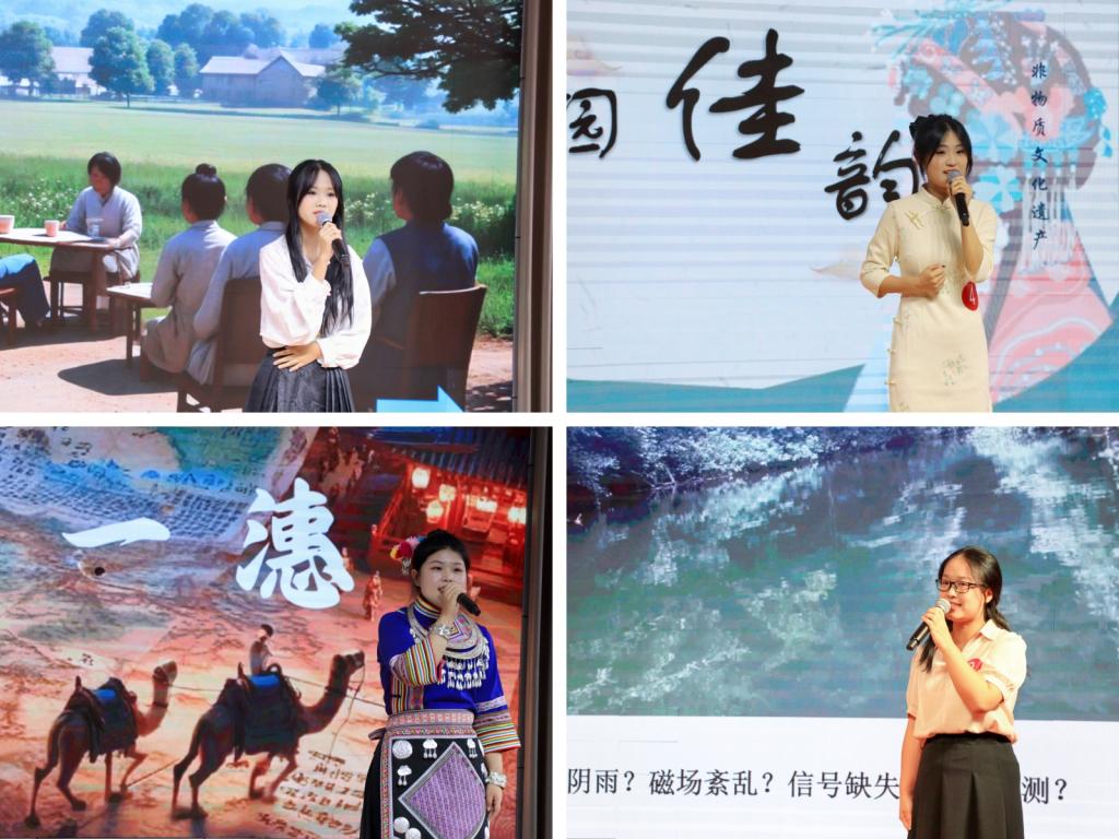 经过激烈角逐,共有八位同学成功晋级决赛,在这个舞台上绽放光彩。本次比赛由“搭档主持”和“个人主持及问答”两部分组成。在搭档主持环节,选手们两人一组,相互配合,为观众们呈现了精彩绝伦的节目。何艺鸿和徐子珺带领观众身临其境般感受历史与现代的融合,遍览天下,领略江南水乡的清丽;牟欣瑶与章宇涛以童趣满满的网络热歌《勇气大爆发》开场,两位选手精心设计的游戏环节贴合孩童心理,为大家带来了精彩的少儿节目。在一段激情四射的舞蹈节目之后,比赛来到了“个人主持与作答”环节。八位选手八仙过海各显神通,为观众们呈现了不同风格的主持。在即兴问答环节,选手们运用超强的随机应变能力巧妙地解决临场问题,展示了他们作为主持人的专业能力。