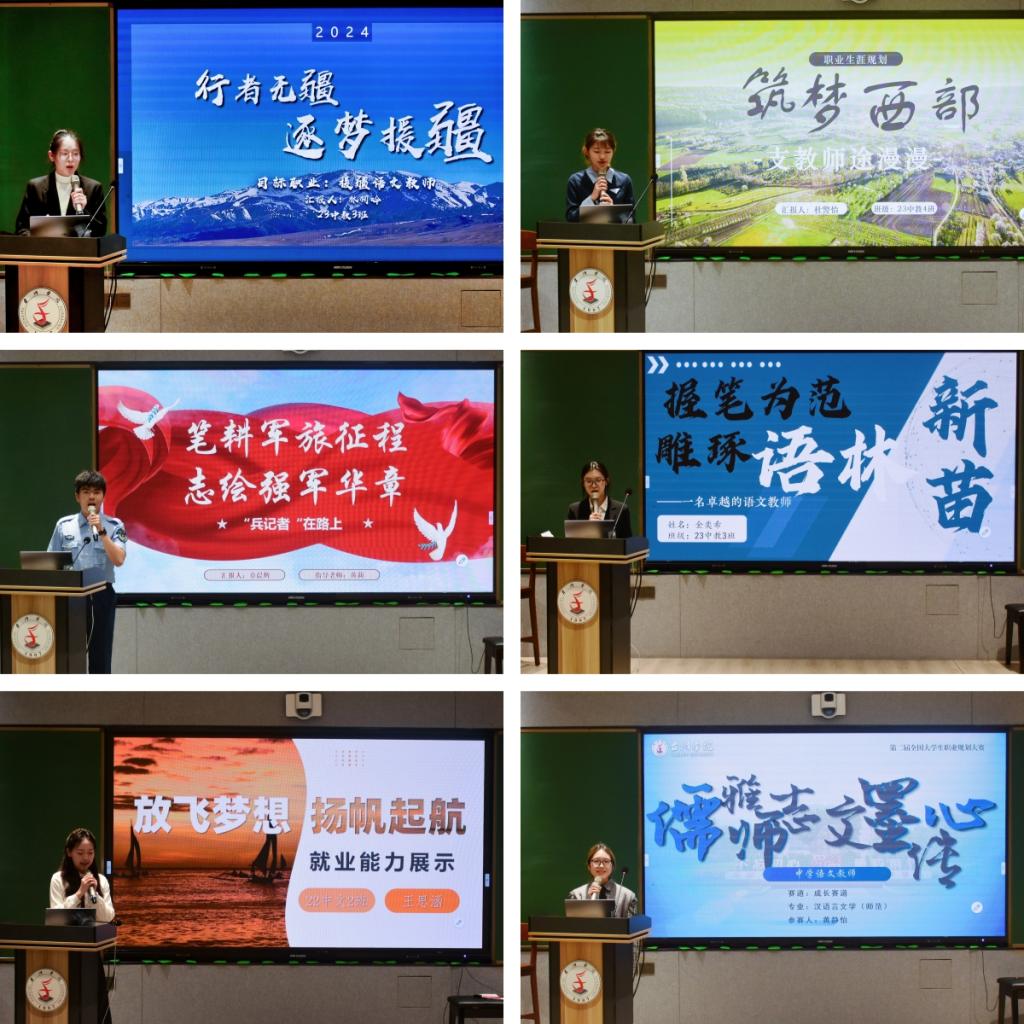 本次职业规划比赛分成长赛道和就业赛道,过程中设评委提问环节。选手们通过职业缘起、自我认知、职业认知、职业行动、计划路径等步骤,分别展示了各具特色的职业规划和就业目标。有的同学结合自身专业优势与兴趣爱好,立志在新兴科技领域开创新天地;有的则聚焦边疆及老年人、残疾人支教领域,提出了创新的职业发展路径。职业涉及教师、记者、军队文职、规划师等各种职业,展现了青年大学生的社会责任担当。选手们将精美的 PPT与生动的演讲完美配合,将个人的职业梦想与实际行动规划结合,赢得了台下观众的阵阵掌声。