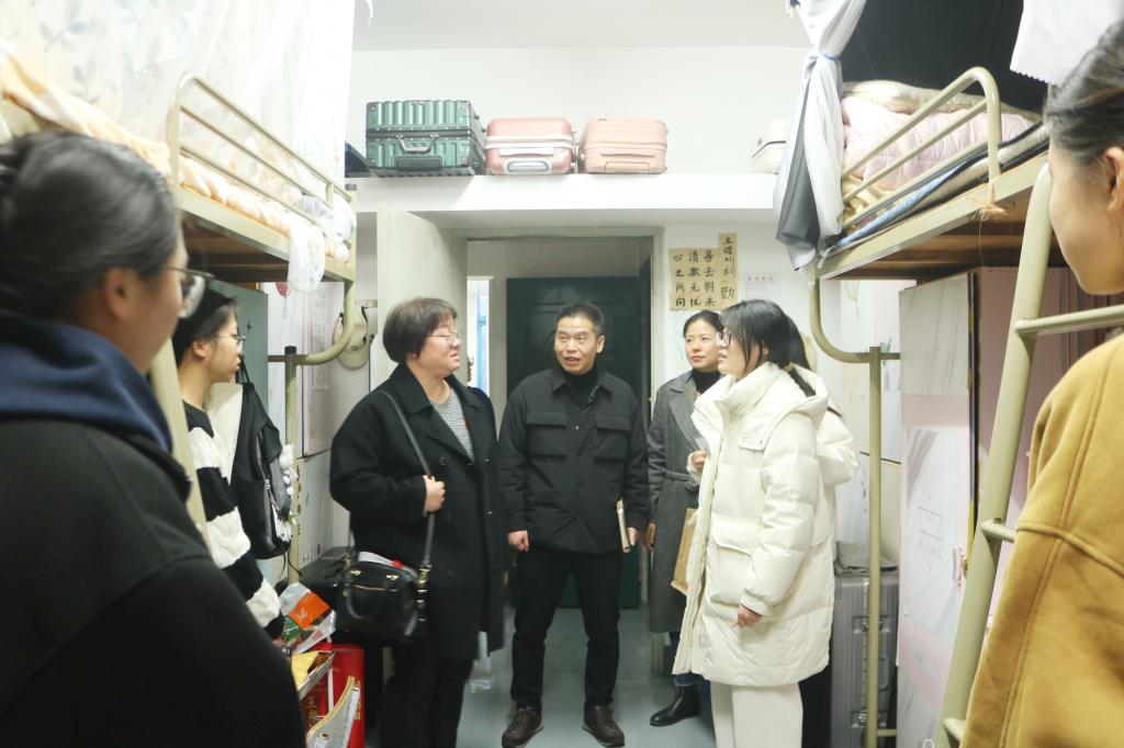 12月5日下午,校党委委员、副校长李钧敏走访人文学院学生寝室,与联系学生亲切交谈。人文学院党委书记陈灵强、学工办主任高晗雯陪同走访。