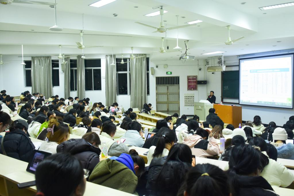 2月26日晚,人文学院2026届教师招聘考试备考指导讲座在A2教室举行。本次讲座由“浙江博越师考”的黄明主讲,辅导员杨盛及2026届学生到场参与。