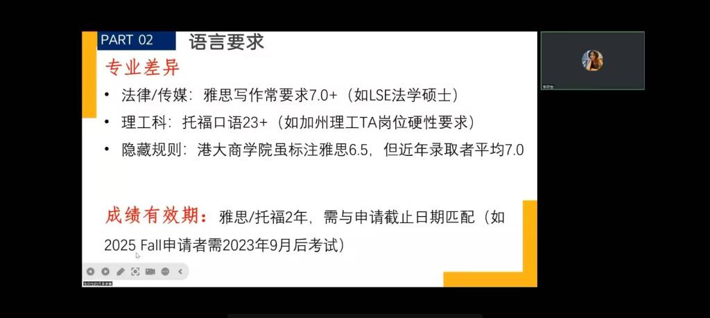 最后,张欣怡依照时间顺序对考研失败后的留学道路进行规划。她指出,此阶段存在时间短缺的问题,需优先投递滚动录取的院校,抢占剩余名额,并认真筛选留学机构辅助材料准备,提升申请效率。