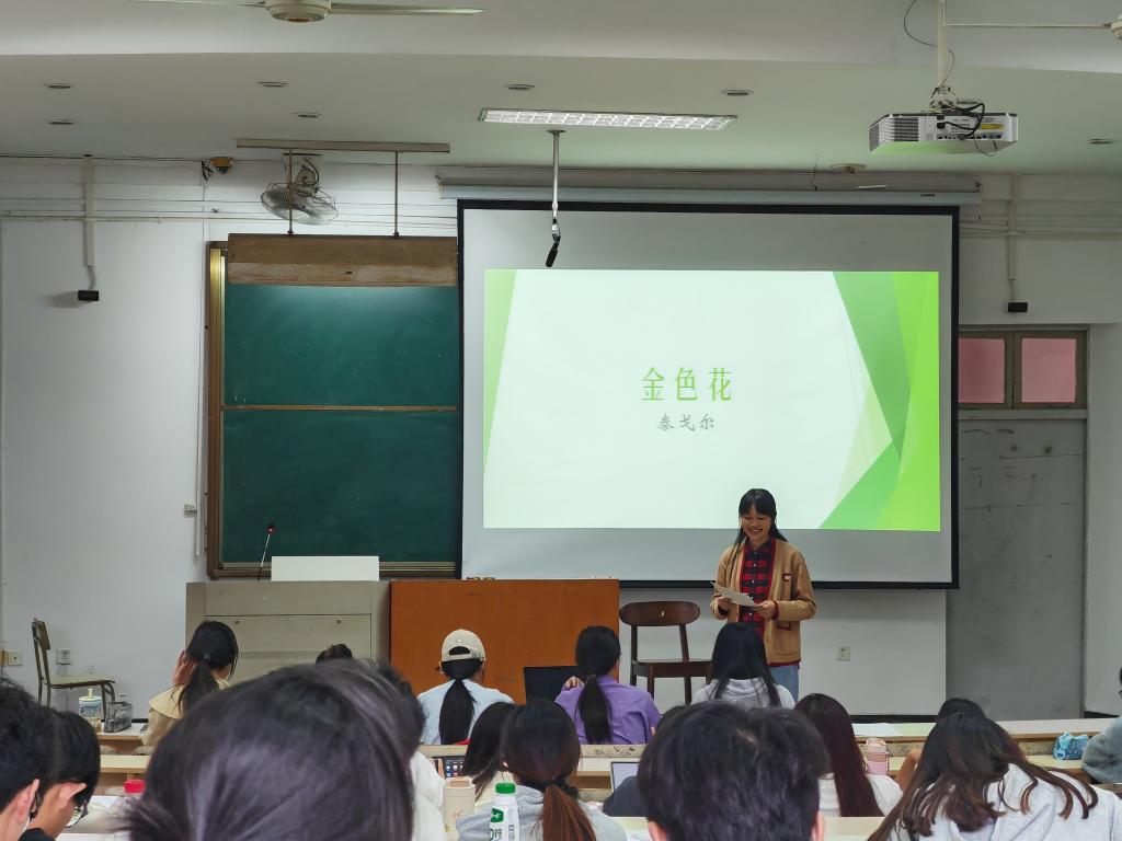 “名师摇篮”省赛模拟上课观摩活动在讲座后半段展开。活动中,黄泺璋、施桦两位同学先围绕主题展开即席演讲,而后分别以泰戈尔《金色花》与冰心《荷叶·母亲》为授课内容展开模拟上课并现场答辩。凭借对文本的独到见解与新颖上课模式,充分展现师范生教学素养,让参与观摩的同学收获颇丰,为大家提供了优质的教学实践参考范例。