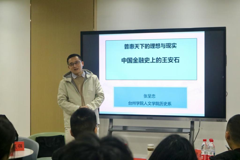 本期读书会以“普惠天下的理想与现实——品读《大宋理财:青苗法与王安石的金融帝国》”为主题,由书本作者张呈忠教授领航解读。他以当代视角切入,开篇阐释王安石的国际影响力与文化象征意义,随后以“从百万之师到万世罪人”“从千年嗔恨到百年崇拜”的历史脉络,生动呈现王安石历史形象的多重流变。讲座中,张呈忠引经据典、旁征博引,从专业维度系统剖析青苗法的制度背景、核心内容、运作机制及其利弊得失,提出一系列富有洞见的解读,并结合国家经济格局与社会结构变迁,总结青苗法对当代治理的现实启示。