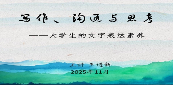 针对书面表达的短板,11月13日,王遇新老师做了“写作、沟通与思考——谈大学生的文字表达素养”的辅导讲座。王老师指出,作为新媒体专业同学,今后将成为记者、编辑、制片人、主播等,这些职业无不要求过硬的口头表达能力或书面表达能力。就书面表达而言,我们需要重视的是沟通取向的书面表达。其不同于审美取向的书面表达,沟通取向的书面表达更加重视信息传达的准确,更加重视与阅听人的共享、共情,以及在此基础上达成理解和说服的传播目标。王老师在讲座中通过解析多个热点舆论事件中的网络小作文,为同学们生动诠释了书面表达的重要性和基本的理念。