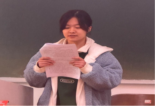 在朗诵考核现场,同学们朗诵抽签选中的篇目。三分钟时间内,同学们专注投入演绎,取得较好效果。指导老师也指出了在朗读的准确性、节奏掌控等有待提高的方面。