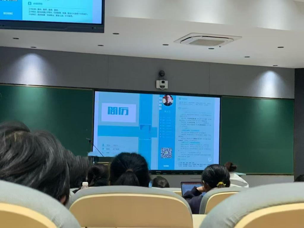 11月19日下午,邱莉莎老师在讲座中向我们分享了她的三段履历,并向我们分享了她的求职经验以及职场中的经验。她告诉我们hr除了性别、专业等等,期中社会实践是hr最看重的。并说做到严谨、周到、谦逊是文秘工作的要求。要注重大学成绩,为未来职业发展做好充分准备。