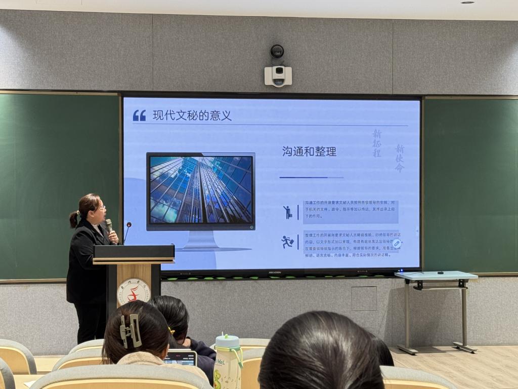 11月17日上午,陈日红老师带来 “文秘类专业技能解读” 专题讲座,从职场实际需求出发,让我们了解了现代文秘的意义,如沟通工作的开展要求文秘人员按照各级倾导的安排、整理工作的开展则要求文秘人员精确理顺等等,以及机关文秘工作中可能会出现的问题。让我们对文秘工作有了更加清晰的认识。