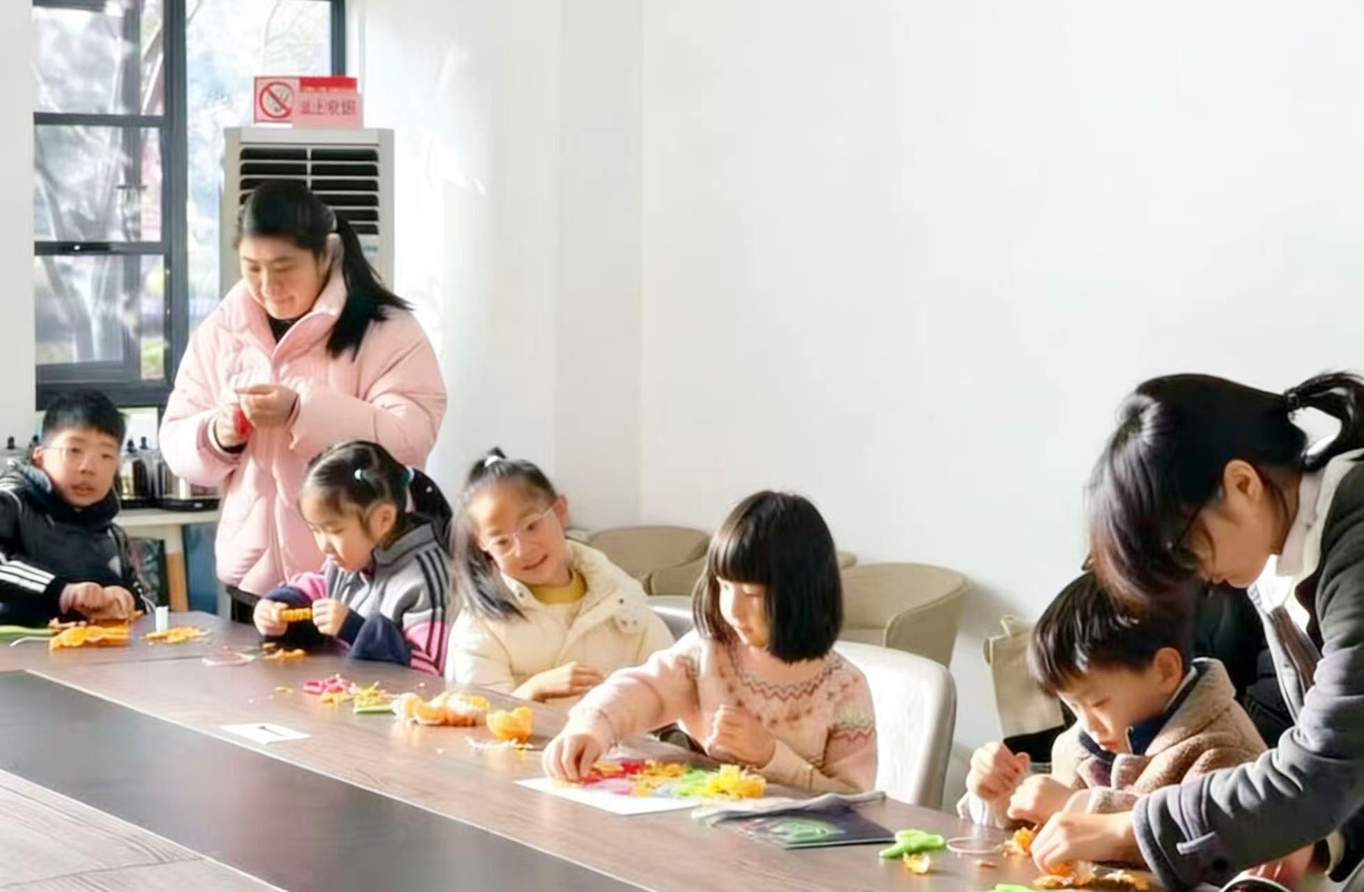 纸上得来终觉浅,绝知此事要躬行。在手工体验环节中,团队以常见食材兼药材——橘皮(陈皮)为切入点,带领孩子们亲手制作橘子手串与中药香包。大家一边搭配艾草等药材,一边挑拣、穿绳、系结,在指尖流转间直观感受草药的香气与特性,深刻体悟“中医药源于生活、用于生活”的真谛。现场药香缕缕、笑语盈盈,文化传承化为一次可参与、可体验的生动实践,也让中医药走出书本、融入日常,在孩子们心中播下热爱与传承的种子。