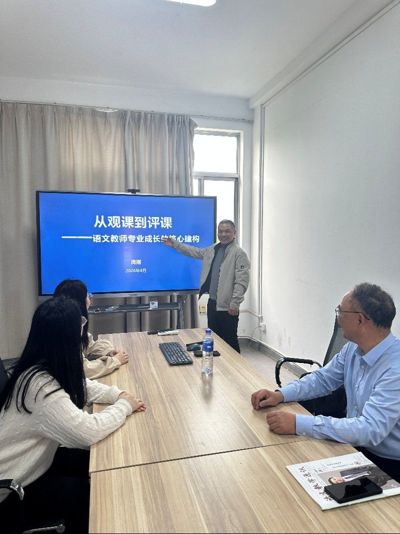 4月13日,人文学院在临海校区1211-1教室举办了《从观课到评课:语文教师专业发展的核心能力建构》的专题讲座。本次讲座特邀北师大附属台州高级中学正高级教师周刚主讲,以观课和评课为主题。讲座由副院长陈隆升主持,25级全体学科语文研究生参加了讲座。