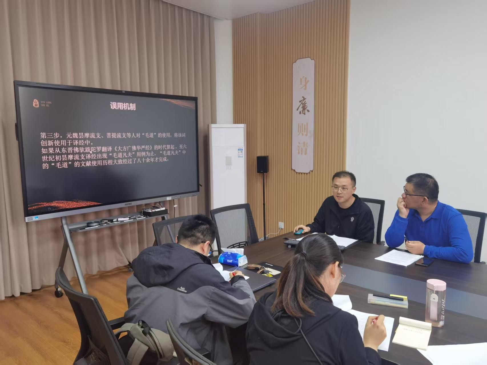 与会人员分别进行了点评与提意见,罗争鸣院长和郝金广博士指出可以进一步完善论文相应的篇章结构;陈隆升院长、朱磊博士、宋佳俊博士和潘润博士指出可以在相应的用语表达上进行进一步的完善,并注意一些用语和措辞;苏畅博士指出可以联系音韵与梵语知识进行进一步分析;杨娜娜博士和张梦如博士从道教文学出发,阐发了可以进一步对其中的思想内涵进行分析。