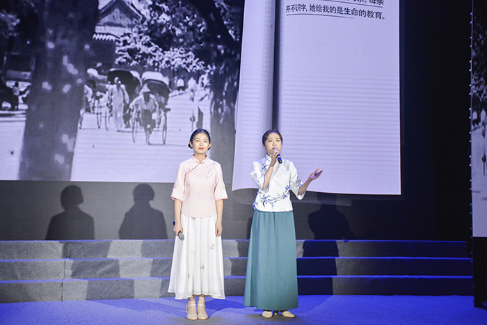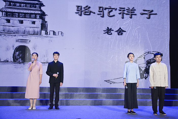 本次活动主要负责人金妮娅老师说:“感谢老舍先生为我们留下了这么多优秀的作品。这是一场用心做的诵读会。从主办单位的组织,从诵读会选材到编排,从视频制作到音乐服装,到诵读作品的舞台呈现,再到直播团队,这是一群真正热爱文学、热爱诵读,有情怀的同路人一起做的一件有意义的事情。”