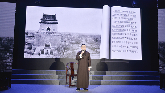老舍先生出生于北京城一个贫民家庭。他的文学世界,描写了北京市民的日常生活,体现了独具一格的“文化批判”倾向和“京味”风格。本次诵读会选择的篇目,都是老舍先生的经典之作。上篇“城与人”部分选取了《正红旗下》《我的母亲》《宗月大师》《小型的复活》《东方学院》《想北平》《吊济南》《八方风雨》等,以散文名篇为主,勾勒了老舍先生从出生、童年、少年、青年到中年的人生轨迹,使观众了解老舍的生活和人格。下篇“人与文”部分则选取了《离婚》《也是三角》《月牙儿》《骆驼祥子》《茶馆》《四世同堂》等小说、戏剧名作,诵读者用声音呈现出老舍作品丰富的内涵、生动的人物和独特的“京味”,深深地打动了观众。