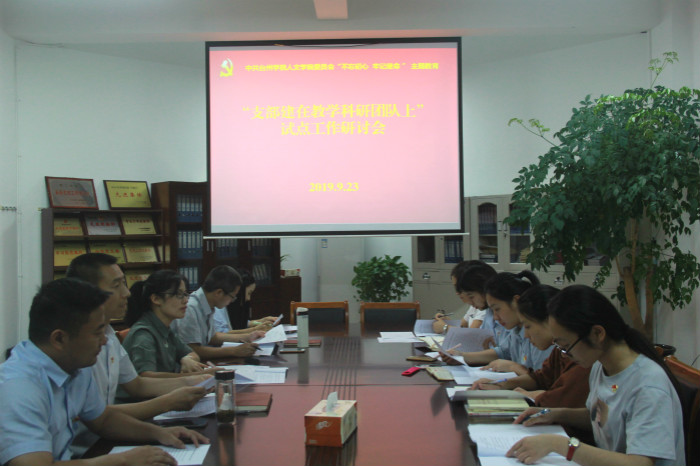 研讨会上,郑丽君书记介绍了《人文学院“支部建在教学科研团队”上试点工作方案》。与会人员围绕方案进行了热烈的讨论,并对组织架构、育人平台等提出了富有成效的建议。学院紧扣立德树人的根本任务,健全全员全过程全方位育人的体制机制。坚持组织建设全覆盖、党建与育人相结合、党建与业务相结合,建立党建与教学科研相互促进的工作机制和工作方法,通过把支部建在教学科研团队上,使党支部工作与教学科研团队工作相联系,与学生社团、第二课堂活动相联系,把党建工作与教学科研、思想政治育人工作紧密相连,在促进党支部建设的同时,促进学科团队充满活力、协调发展,促进“三全育人”工作有效落实。