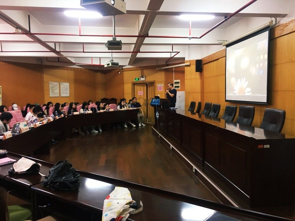 2019年9月20日下午,考察团队集中观摩了暨大新闻与传播学院与网易联合举办的“网易游戏AVG平台专题分享会”,这是该学院“功能游戏训练营”系列讲座之一。主讲人李运林为网易战略研究中心高级战略总监,对网络游戏行业背后的泛娱乐化有着深刻认识和研究。据了解,这种学界与业界人士共同进入学生课堂已经成为常态,成为更接地气、更受学生欢迎的授课模式。