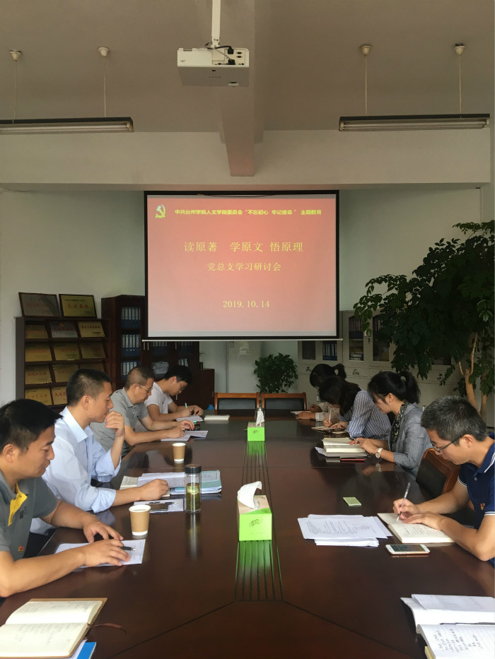 10月14日上午,人文学院党总支理论中心组扩大会议举行“不忘初心 牢记使命”主题教育研讨会。学院领导班子成员、学工办教师代表参加了研讨会。