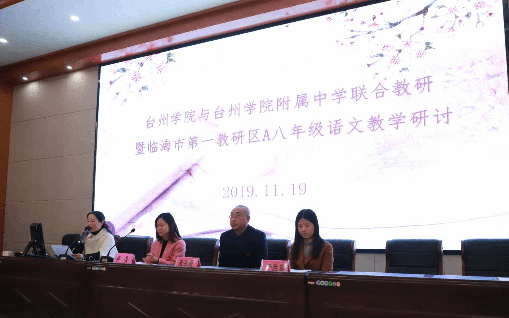 11月19日上午10:00,人文学院“教授博士工作站”附中站与附中语文组的第一次联合教研活动在附中报告厅正式拉开帷幕,本次联合教研活动以“文本细读的方法与教学实践”为主题,参加活动的人员包括台州学院附中语文组全体教师、临海第一教研区八年级语文教师、我校中文师范专业部分“拜师学艺”同学以及17级汉语言文学师范专业赴附中教育见习的同学。
