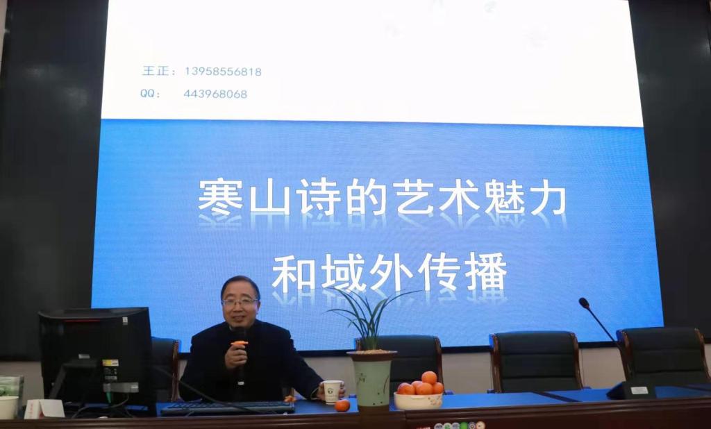 2019年12月3日,台州学院附中“子曰馆”邀请我校王正教授在附中报告厅举办《寒山诗的艺术魅力和域外传播》学术讲座。台州学院附中多名教师以及我校人文学院部分学生聆听了讲座。