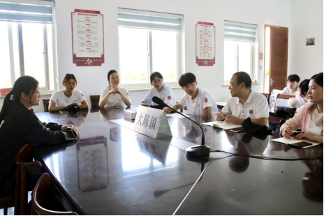 7月5日上午,在李跃华、张燕老师的带领下,实践队来到了大陈镇政府进行座谈会。在这里,政府的工作人员向我们介绍了大陈岛的建设现貌。大陈目前人口在一千人左右,曾获得省级美丽城镇样本、全国文明镇,国家级生态镇等多项荣誉。在与工作人员进行了深入交流后,队员们了解到更多有关大陈今朝的共同富裕建设成就:如大陈政府将数字化改革跟大成建设融合,在去年实现大陈的5G化之后,又将三医联动服务提上行程,为百姓纾困解难,赢得当地民众“点赞”频频;又如红色垦荒旅游吸引了大批的游客到访,访客亲身体验这片海岛土地,探寻扎根在这里的红色垦荒记忆。大陈镇政府去年在建设“小康的大陈”上已经颇具成效,目前则是要重点建设“现代化”的大陈,推进大陈岛的经济开发,改善岛上居民的生活水平,从而得以进一步向着共同富裕目标稳步迈进。