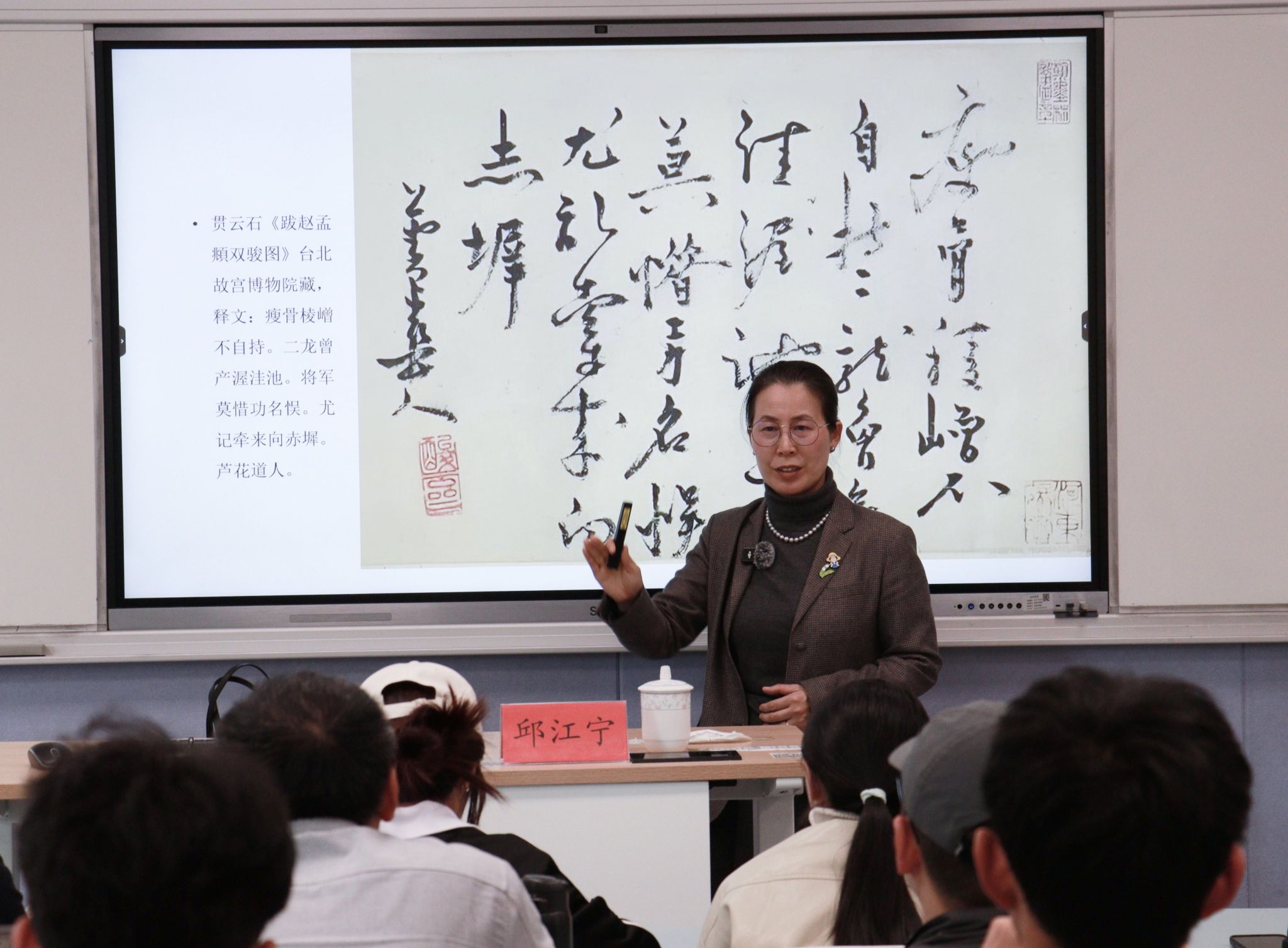 在互动交流环节中,在场师生结合自身专业学习与学术研究心得,围绕元代图像艺术、民族文化融合等问题踊跃发言、积极提问。邱江宁教授逐一耐心解答,与师生们展开深度探讨与思想交流,现场氛围热烈而融洽。